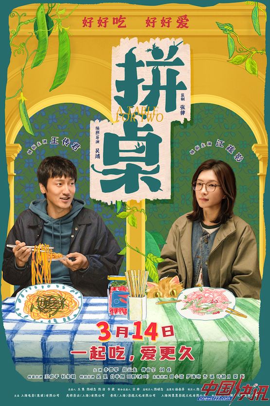 今日,由上影集团领衔出品,张律监制,陈洁担任制片人,吴靖担任编剧并执导,王传君、江疏影领衔主演,李雪琴、郑云龙、傅首尔、刘佳主演,王彩平、杜家毅特邀出演,吴冕、白举纲、田野(老四)特别出演,田小洁、罗海琼、齐溪、许龄月、葵葵友情出演的电影《拼桌》官宣定档3月14日,并发布“拼好爱”版预告与“酒肉情侣”版海报。预告中由王传君饰演的程序员陆拾谷,和由江疏影饰演的图书编辑张嘉怡,因为一次午饭拼桌邂逅成为了饭搭子,在不断解锁更多美食的经历下,俩人在一次次的同频中逐渐“煲”出不一样的感情。电影将于3月14日全国上映, 实力派演员携手演绎真挚平和的爱情,传递最是烟火抚人心的幸福。