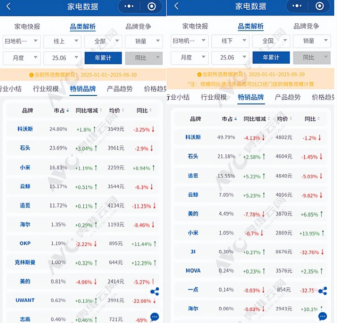 但其他品牌的追赶也非常激烈。据奥维云网数据,2025年上半年,科沃斯以24.8%的线上市占率领跑,石头科技、小米、云鲸、追觅紧随其后,但彼此差距仅数个百分点。