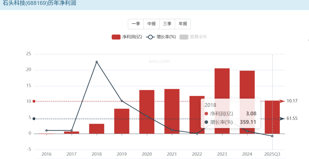 2025年三季度,石头科技单季归母净利润同比增速已经转正,盈利下滑趋势有所收敛。